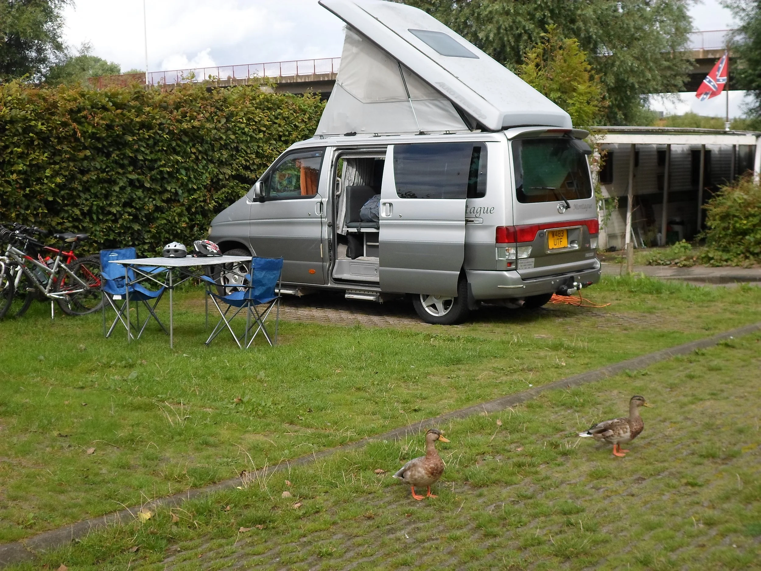 Our Bongo felt quite large to drive at first, even though it was hardly wider or longer than our Zafira. They are over 2m tall, so we had to take notice of height restriction signs in car parks. We realised it was too small for all 4 of us to sleep comfortably. We bought an awning, which attached by a plastic strip above the van side door, and took it camping. The boys slept in the van, one in the roof, one on the unfolded seats. We slept in the tent section of the awning. It was very windy and we woke to see the sky as the awning had detached from the van.