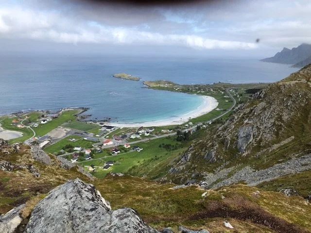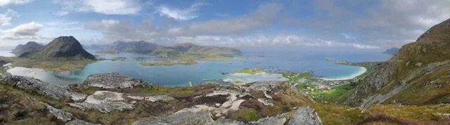 Time to move on from Reine to the town of Svolvaer, the main port on the islands. We broke the journey at a small town called Ramberg famous for its beach. Ramberg is also the starting point for a steep but fairly short walk up to a hill called Nubben which provided us with lovely views towards the beach and nearby mountains.