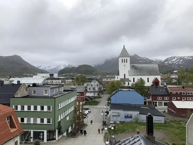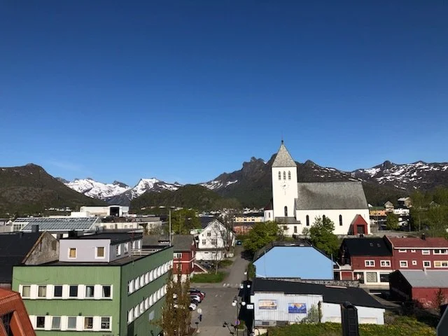 For most of our time in Svolvær the skies have been resolutely grey with cloud cover barely above the rooftops. Today however, our day of departure for Narvik, we have been treated to clear blue skies and distant Mountain View’s.